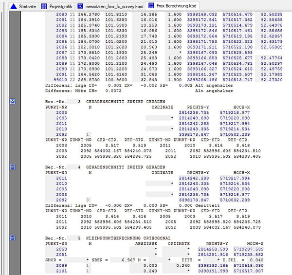 Die im Felde ermittelten vorläufigen Koordinaten speichert die Schnittstelle in ein gesondertes Berechnungsdokument zum Vergleich mit den gegebenenfalls aus der Ausgleichung bestimmten endgültigen Koordinaten.