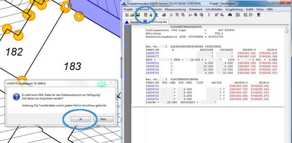 Nach dem Export startet rmDATA GeoMapper und importiert die von KAVDI bereitgestellten Daten.