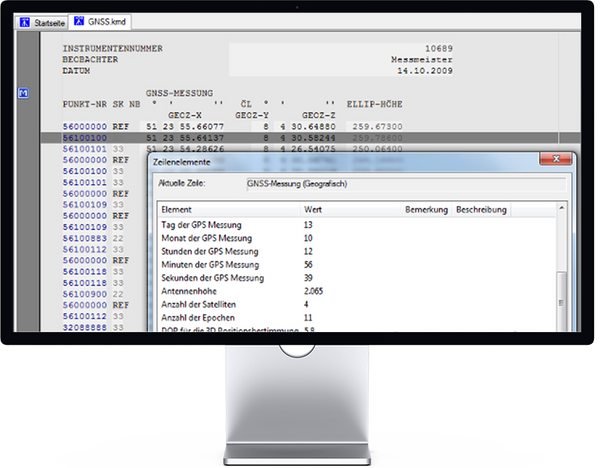 Die GNSS-Messungen in einem oder mehreren Messdatenprotokollen ist die Datenbasis für die GNSS-Auswertung.