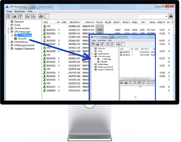 In der Koordinateneingabe werden nicht nur die aus der GNSS-Auswertung gemittelten Koordinaten gespeichert, sondern auch die Einzelbeobachtungen. Diese finden dann in einer eventuell durchzuführenden Ausgleichung Verwendung.